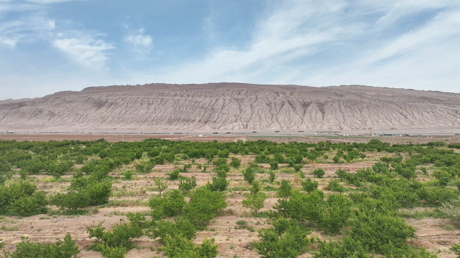 火焰山下的桑葚园(航拍)。吐鲁番市融媒体中心通讯员 夏依玛旦·艾热西丁 摄