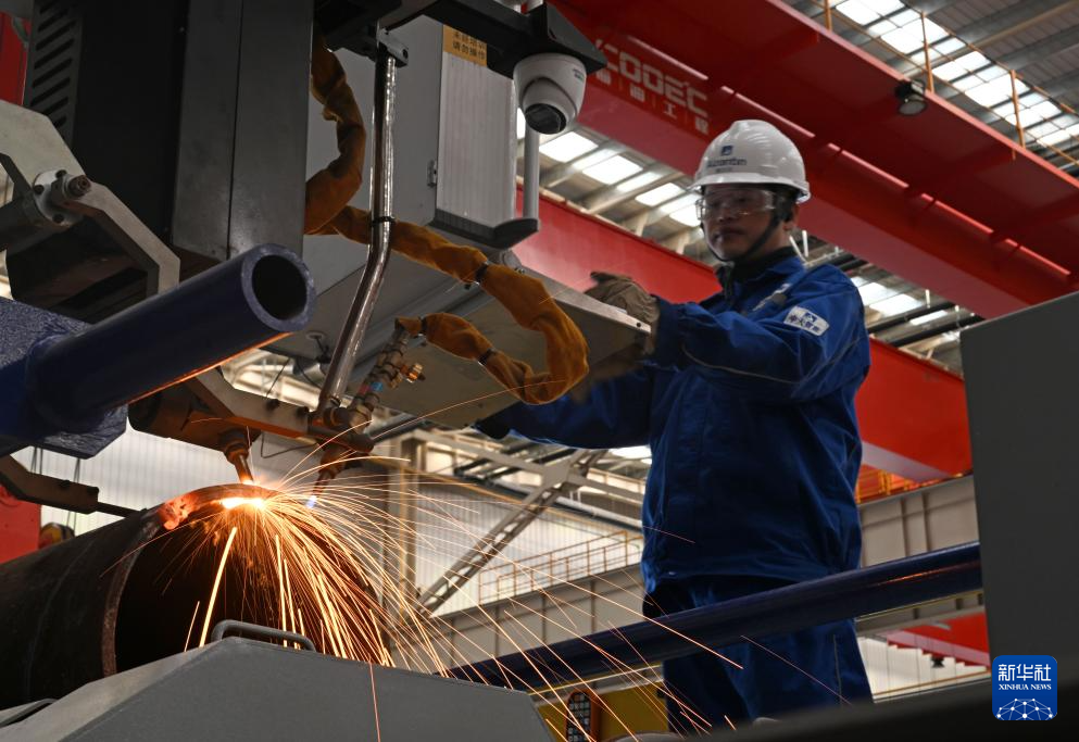 10月30日,工作人员在海油工程天津智能制造基地制管作业车间操作一款智能焊接设备。新华社记者 赵子硕 摄