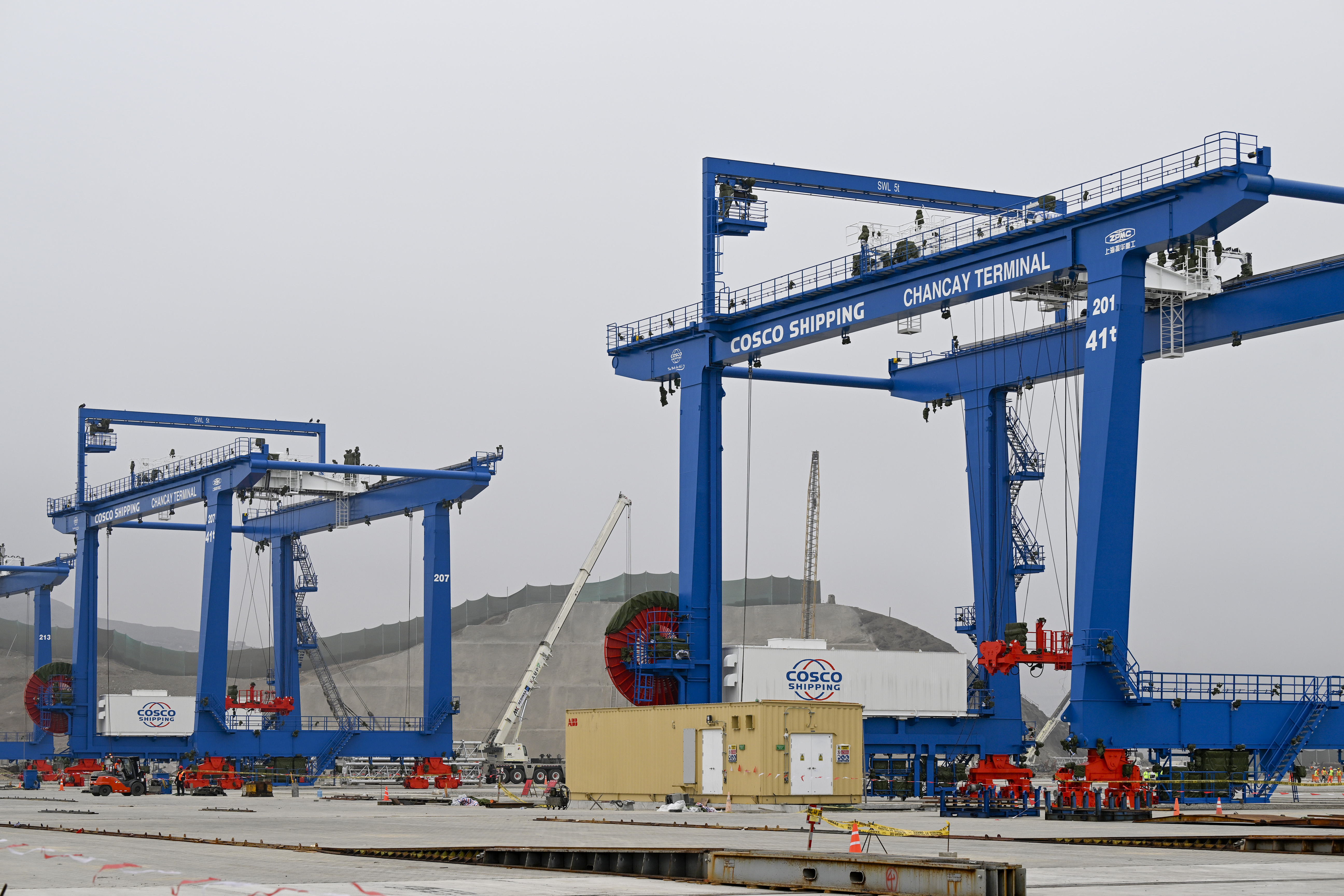 这是2024年6月21日拍摄的秘鲁钱凯港码头操作区建设现场。