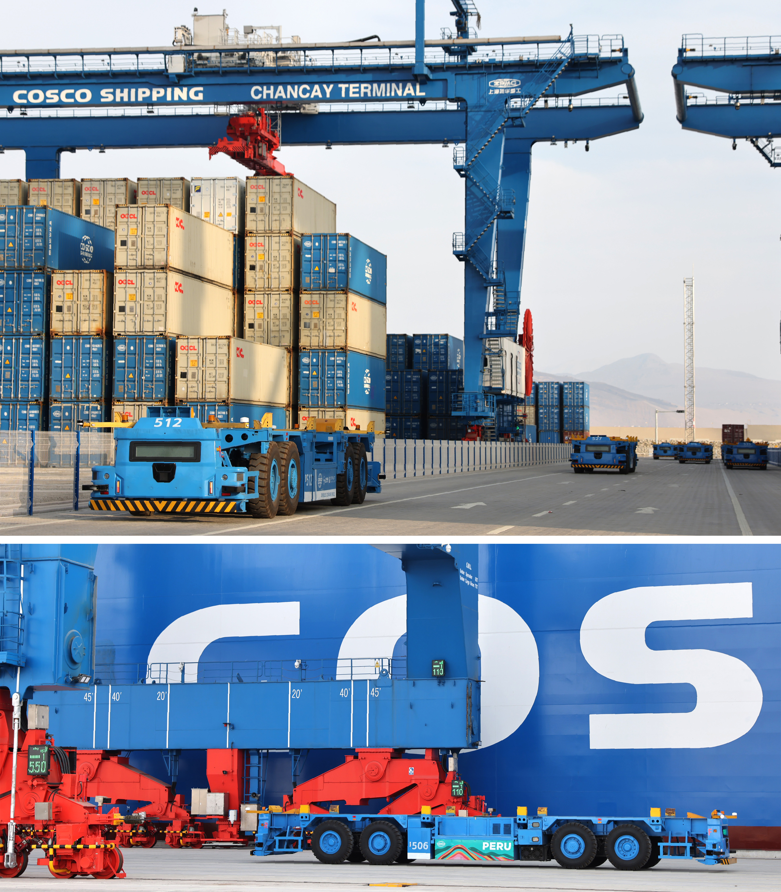 2024年11月9日,集装箱船驶入秘鲁钱凯港自动化码头。(上海振华重工供图)