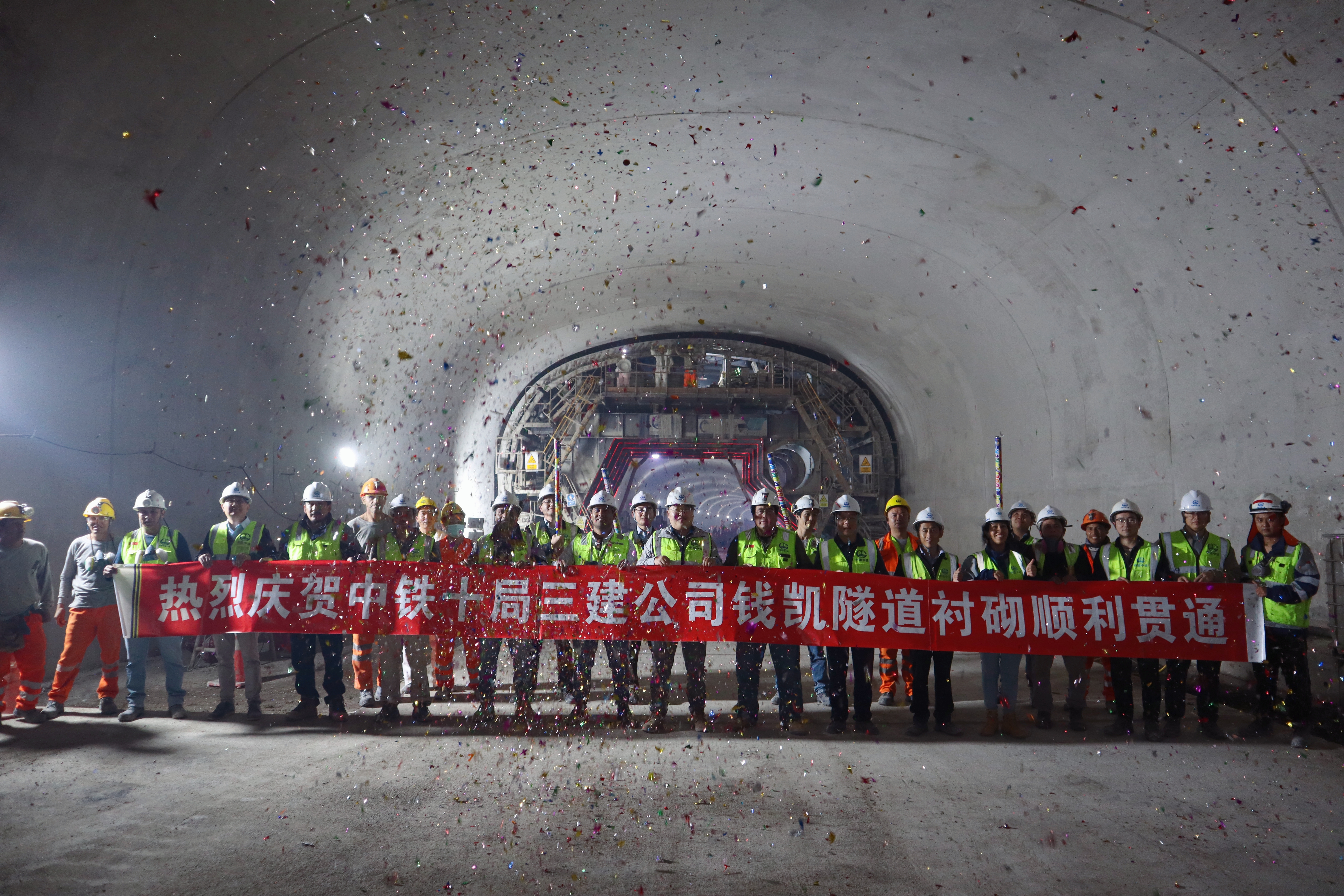 2024年10月9日,工作人员在秘鲁钱凯隧道施工现场合影庆祝。(中铁十局秘鲁指挥部供图)
