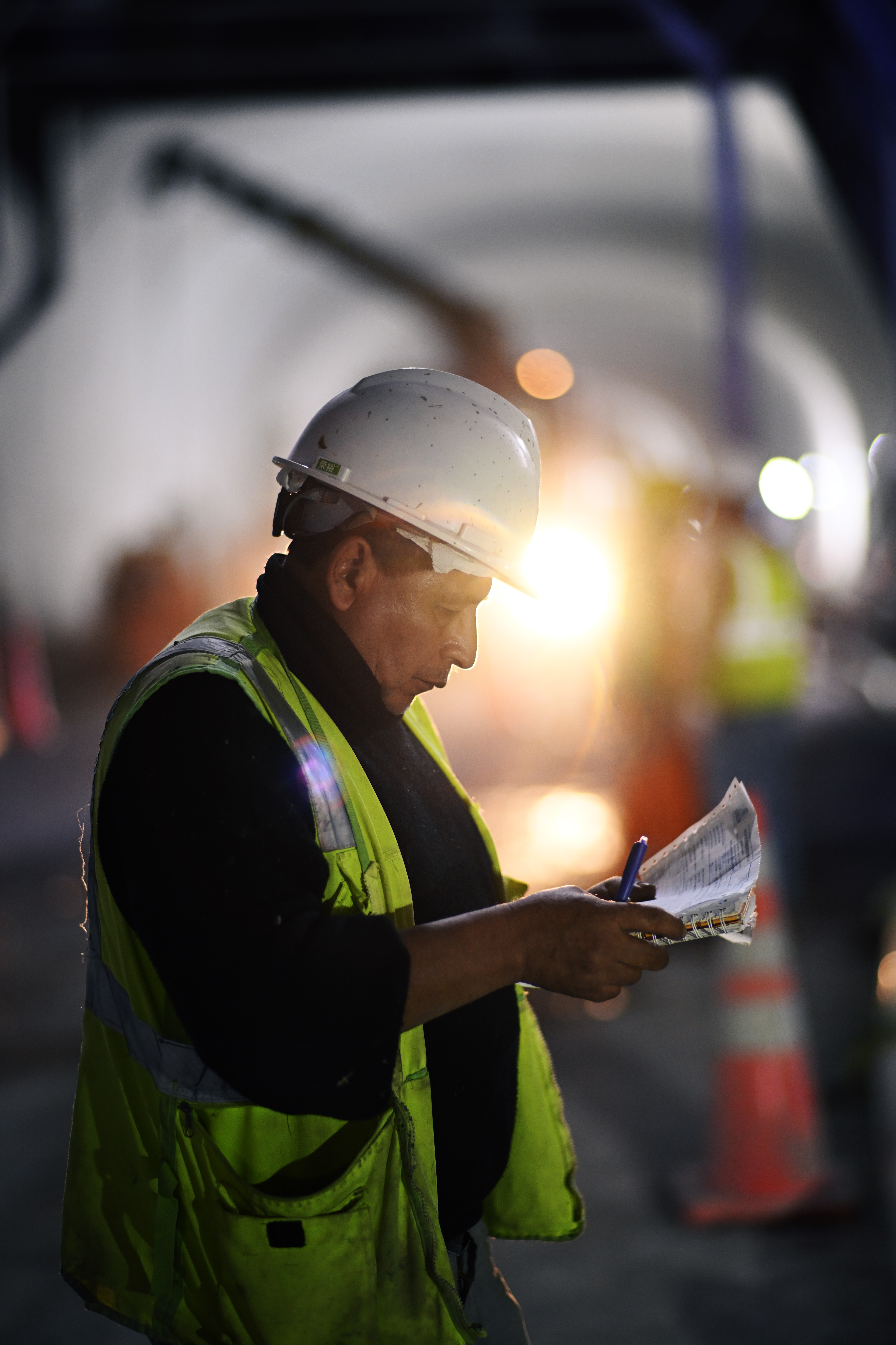 2024年10月8日,一名当地员工在秘鲁钱凯隧道施工现场忙碌。