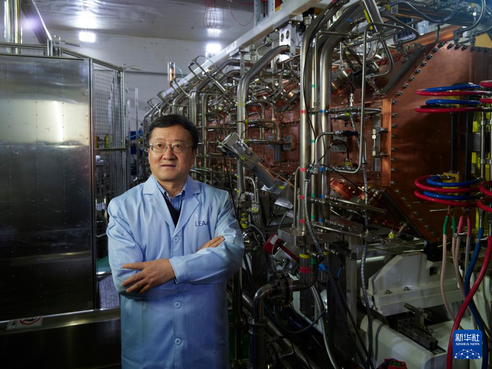 12月10日,项目总负责人、中国科学院院士赵红卫在低能量强流高电荷态重离子研究装置前留影。新华社记者 金立旺 摄