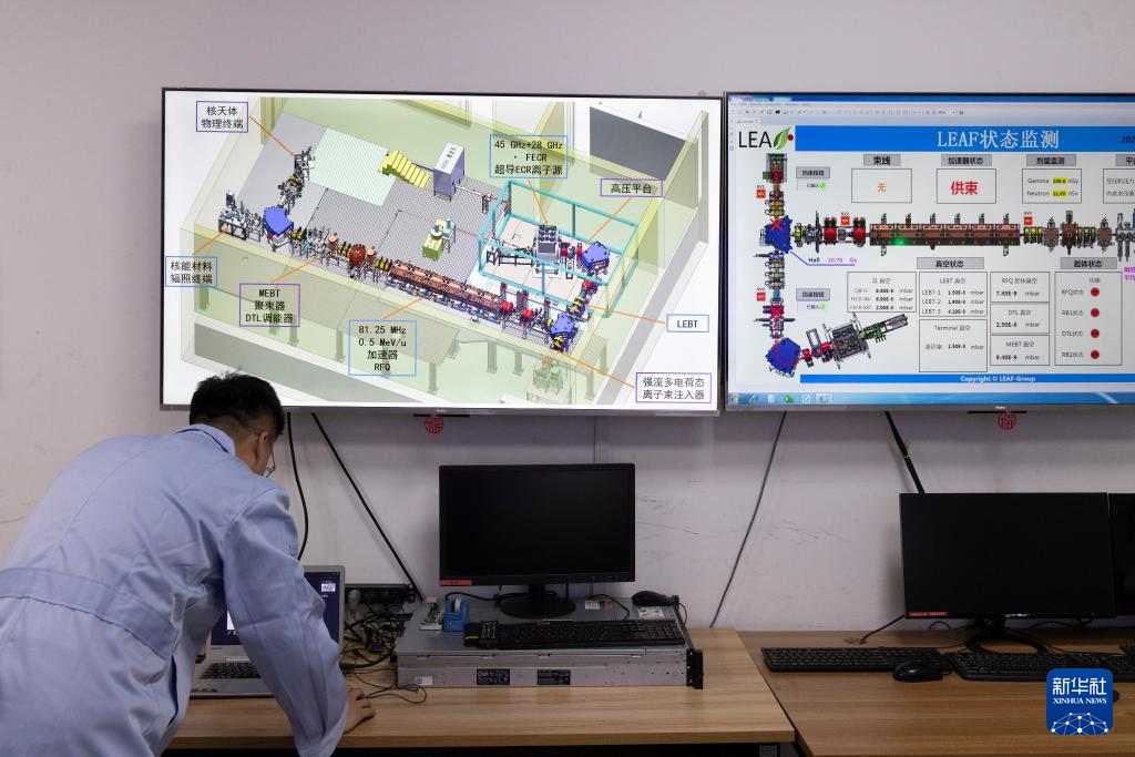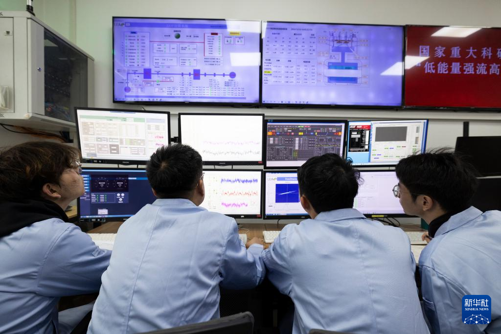 12月10日,科研人员在低能量强流高电荷态重离子研究装置控制室调试实验装备。新华社记者 金立旺 摄