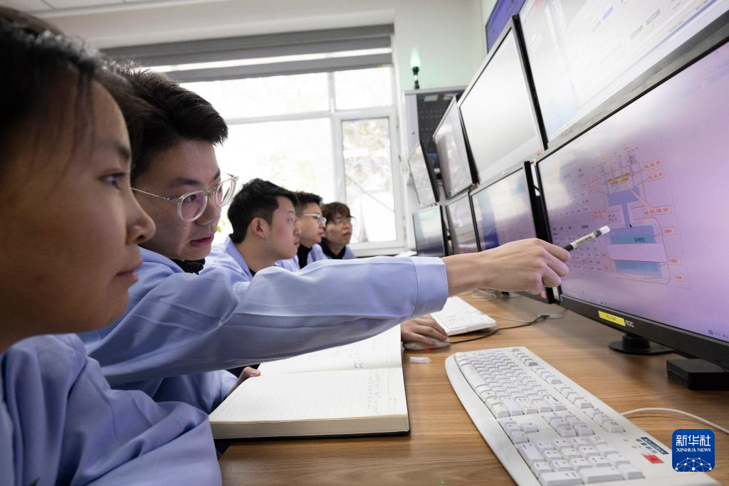 12月10日,科研人员在低能量强流高电荷态重离子研究装置控制室观察实验数据。新华社记者 金立旺 摄