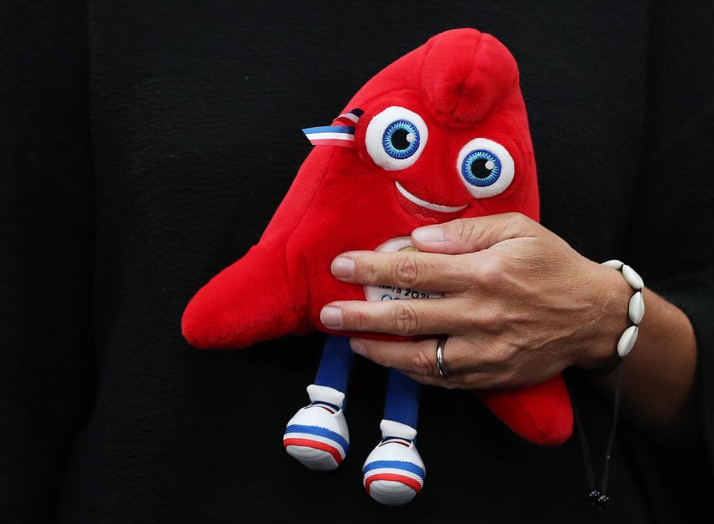 2022年11月14日,一位嘉宾在发布会现场手持2024年巴黎奥运会吉祥物。当日,巴黎奥组委公布2024年奥运会和残奥会的吉祥物“弗里热(The Phryges)”,巴黎奥运会和残奥会将使用同一吉祥物形象,但在细节设计上有稍许差别。