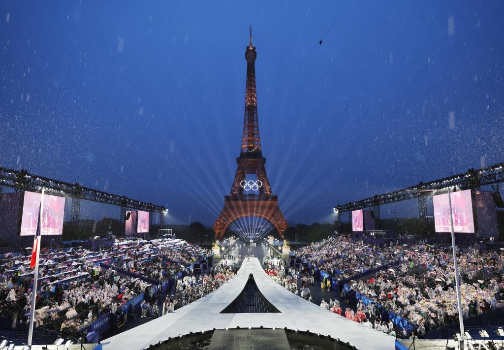 这是2024年7月26日在特罗卡德罗广场拍摄的开幕式现场。当日,第33届夏季奥林匹克运动会开幕式在法国巴黎举行。