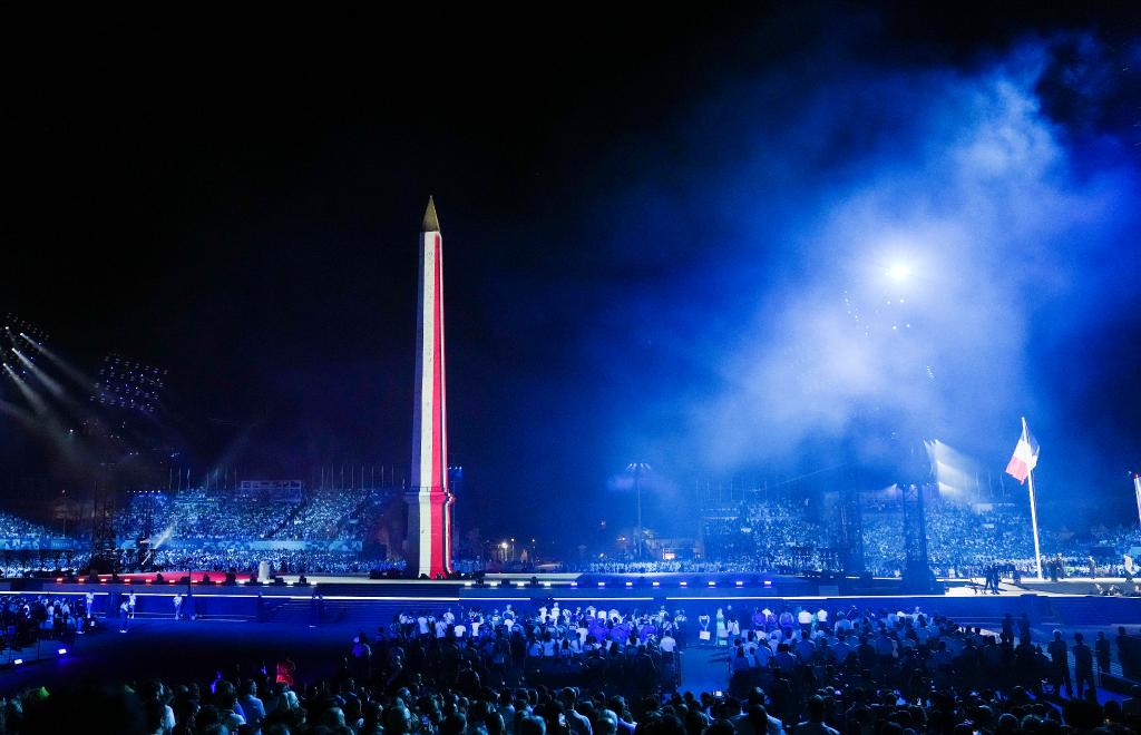 2024年8月28日,在开幕式上,法国国旗被投射到巴黎协和广场方尖碑上。当日,第17届夏季残疾人奥林匹克运动会开幕式在法国巴黎举行。