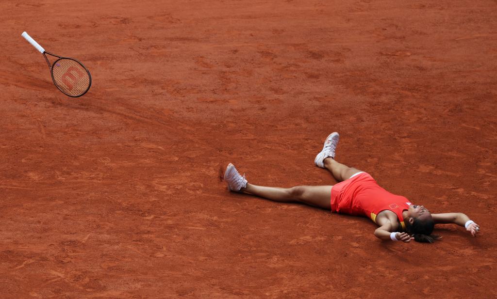 奥运会的网球赛程长,10天下来只产生5块金牌,比不了田径、游泳等金牌大户,也不是中国队的夺金热门项目。没想到,在法网只挺进过八强的郑钦文一路高歌猛进,拿下金牌。赛前,我赌郑钦文一旦夺金会倒地庆祝,猜测以她的习惯会倒向哪个方向,计算好时间、越过重重障碍爬上裁判席对面看台,郑钦文庆祝夺冠时倒在了我猜测的位置。