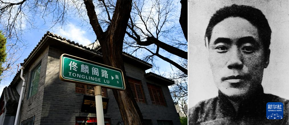 拼版照片:左图为北京市西城区佟麟阁路(新华社记者刘金海2025年3月25日摄);右图为佟麟阁像(资料照片)。