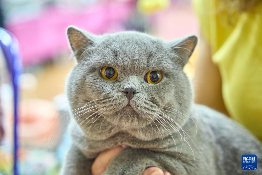 9月21日,一只英国短毛猫正在等待参加选美比赛。