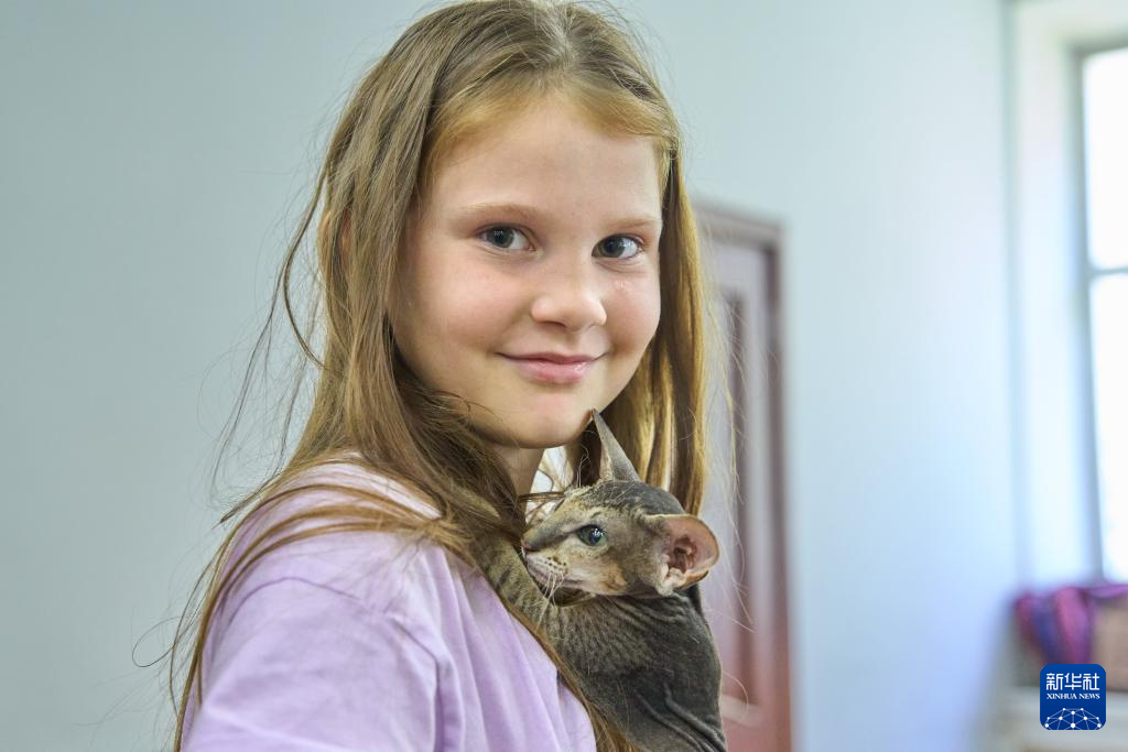 9月21日,一名女孩抱着她的彼得无毛猫。