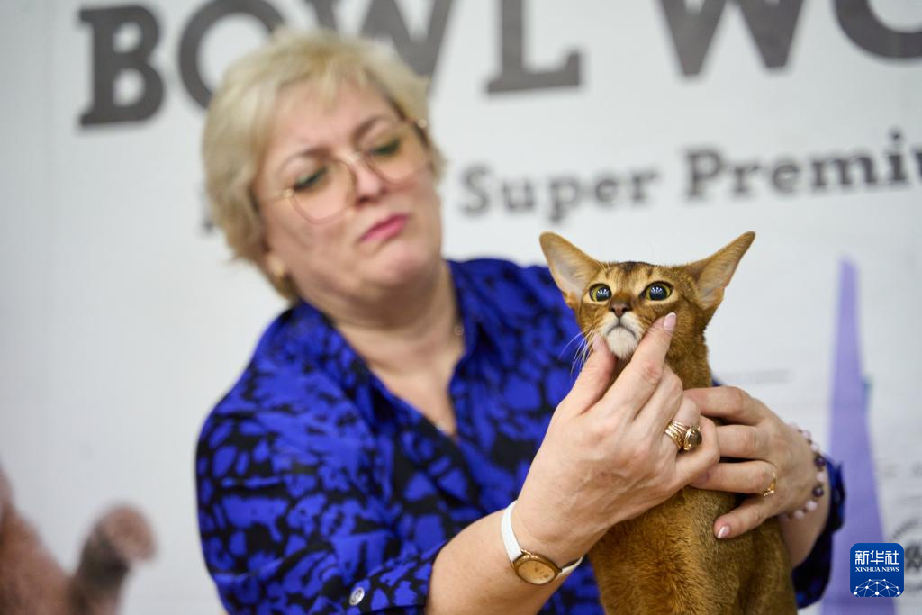 9月21日,一只阿比西尼亚猫正在接受评判。