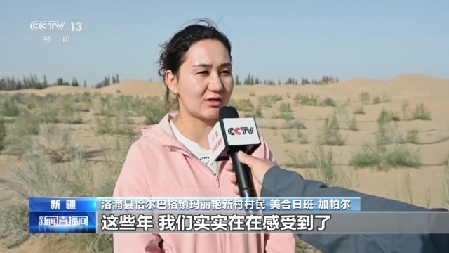 洛浦县恰尔巴格镇玛丽艳新村村民 美合日班·加帕尔:总书记说过“绿水青山就是金山银山”。这些年,我们实实在在感受到了治沙不仅能让生态环境变好,还能带来不错的收入。我们会一代接着一代干,沙漠变良田,让家乡的天更蓝、山更绿、水更清、环境更优美,日子越过越红火。