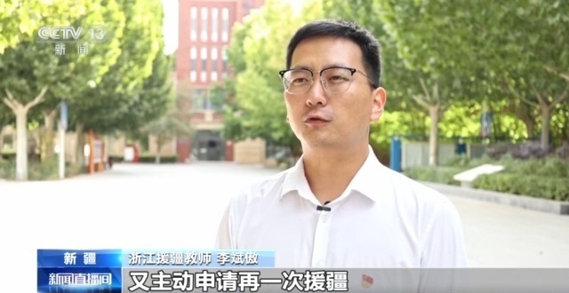 浙江援疆教师 李斌傲:作为一名95后援疆教师,我第一期援疆结束后,又主动申请再一次援疆,投身援疆倍感光荣。我们要接续努力,一批接着一批干,为新疆教育水平提升和人才培养,尽自己所能做好工作。传承“胡杨精神”,和新疆各族干部群众一起谱写中国式现代化新疆篇章。