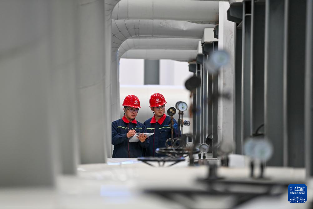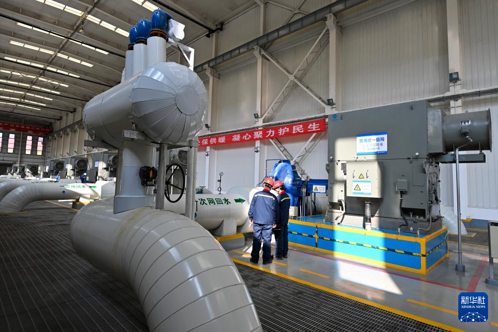 在太原市热力集团有限责任公司中继能源站,工作人员检查设备运行情况(10月19日摄)。