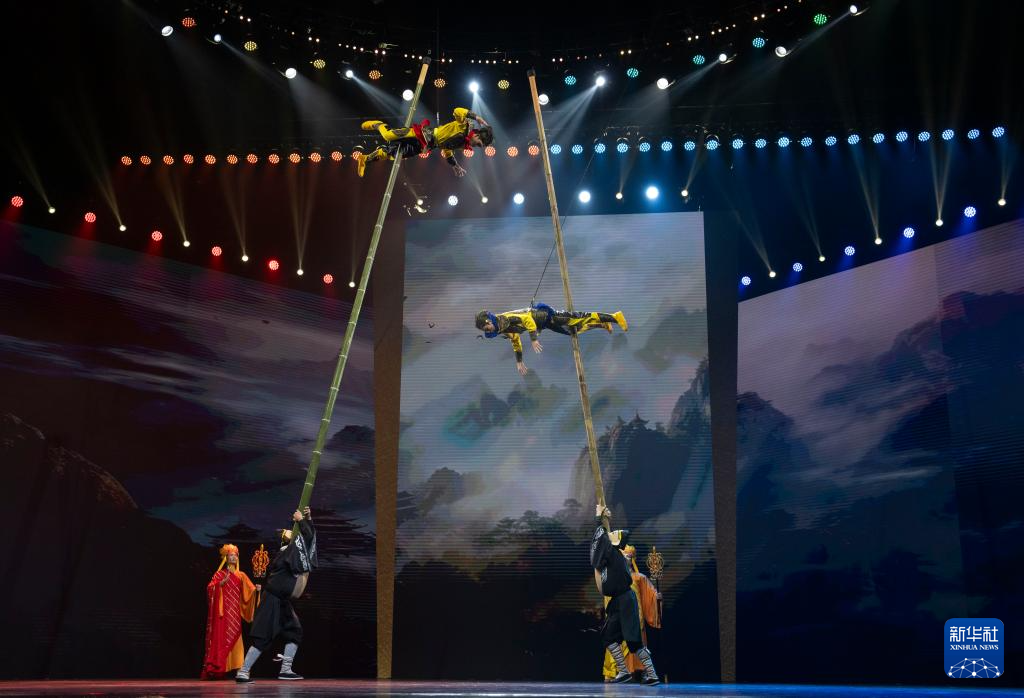 10月25日,在北京二七剧场举行的“艺苑撷英——2025年全国优秀青年艺术人才展演”上,聊城市杂技团演员表演杂技《俑·顶碗》。新华社记者 才扬 摄