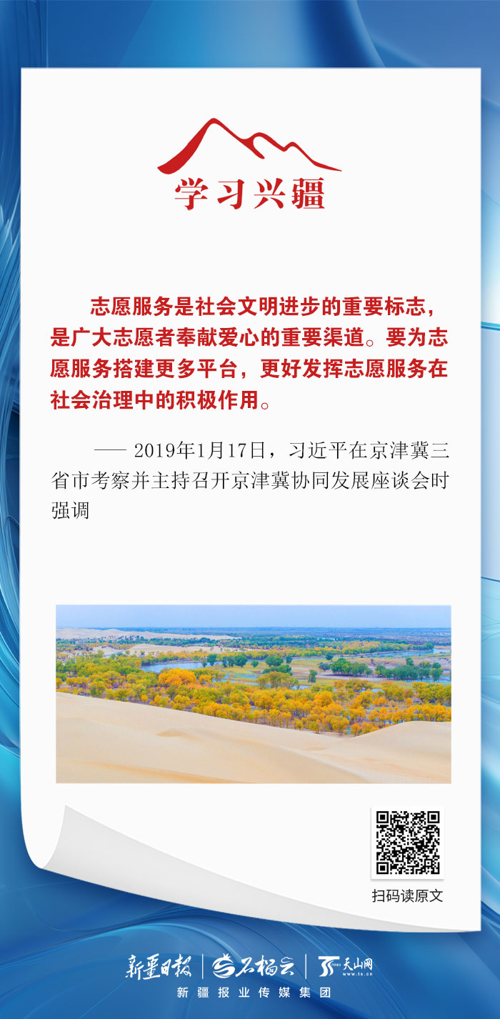 志愿服务是社会文明进步的重要标志,是广大志愿者奉献爱心的重要渠道。要为志愿服务搭建更多平台,更好发挥志愿服务在社会治理中的积极作用。