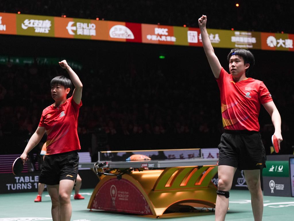 国乒大胜日本队 实现混合团体世界杯“三连冠”