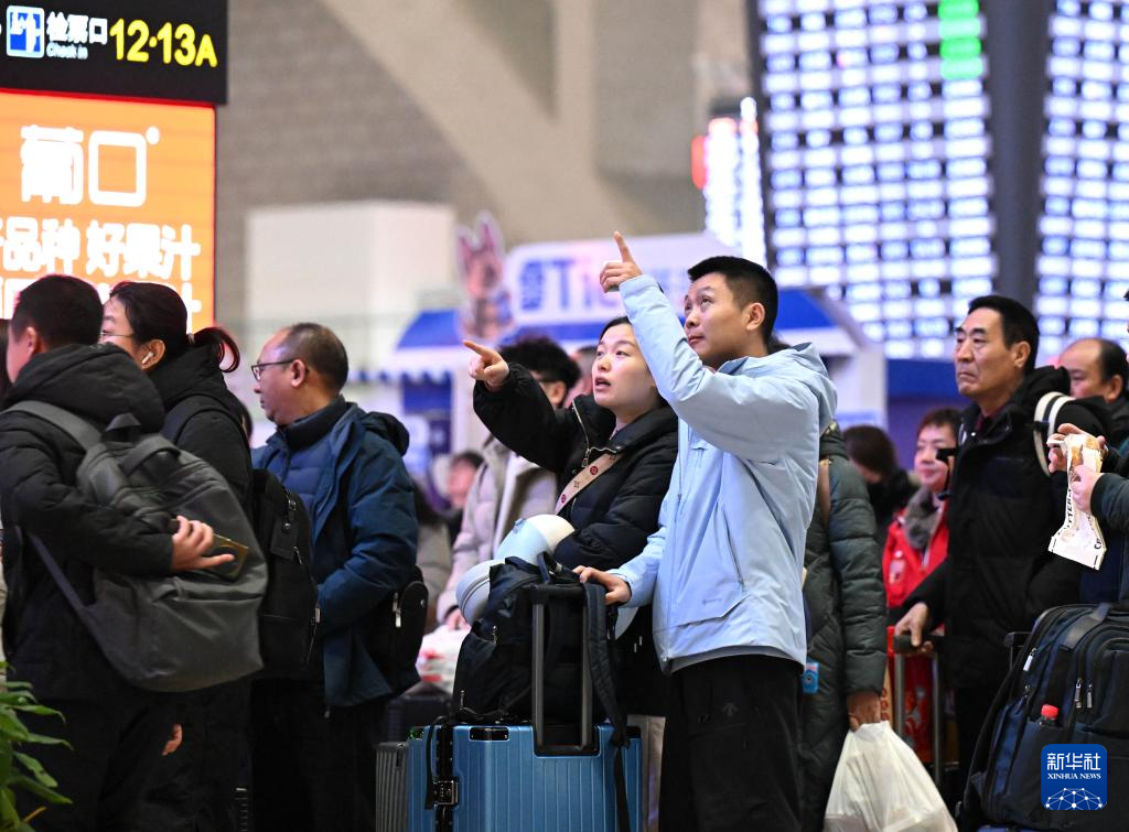 2月2日,旅客在哈尔滨火车站乘车出行。 新华社发(原勇摄)