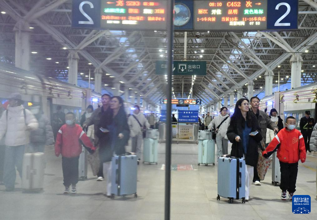 2月2日,旅客在云南丽江火车站乘车出行。 新华社发(赵庆祖摄)