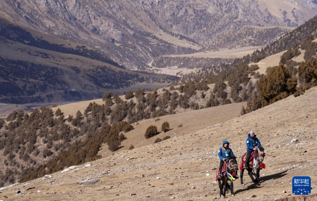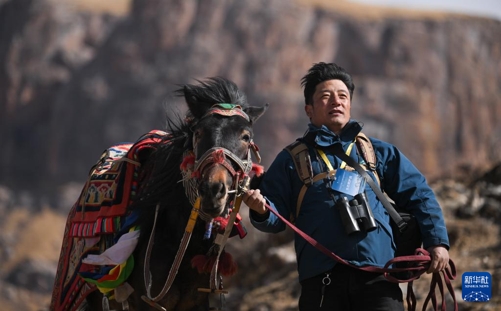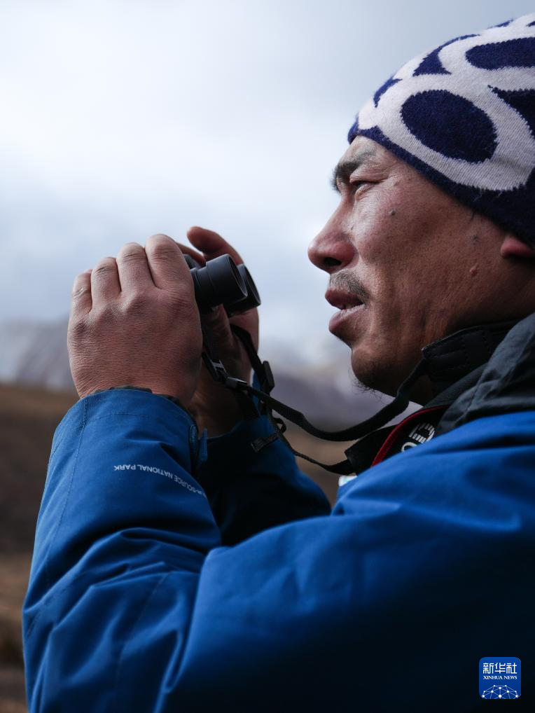 1月29日,在青海省玉树藏族自治州杂多县昂赛乡,更尕在巡护中。 新华社记者 齐芷玥 摄