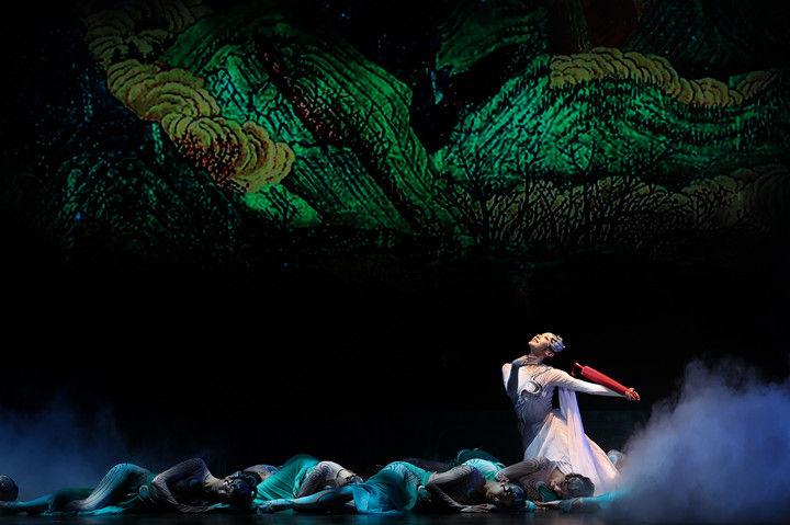 这是舞蹈诗剧《只此青绿》的演出剧照(2024年7月18日摄)。