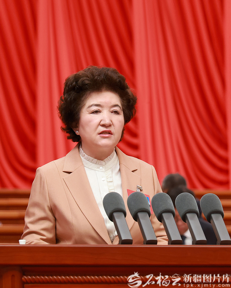 1月29日,祖木热提·吾布力受自治区人大常委会委托向大会报告工作。石榴云/新疆日报记者 崔志坚摄