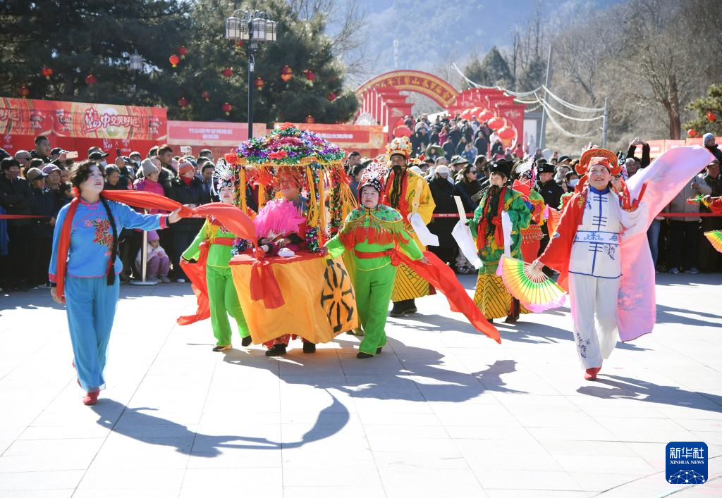 2月17日,演员在北京市平谷区刘家店镇2026年丫髻山春节庙会上表演节目。新华社记者 任超 摄