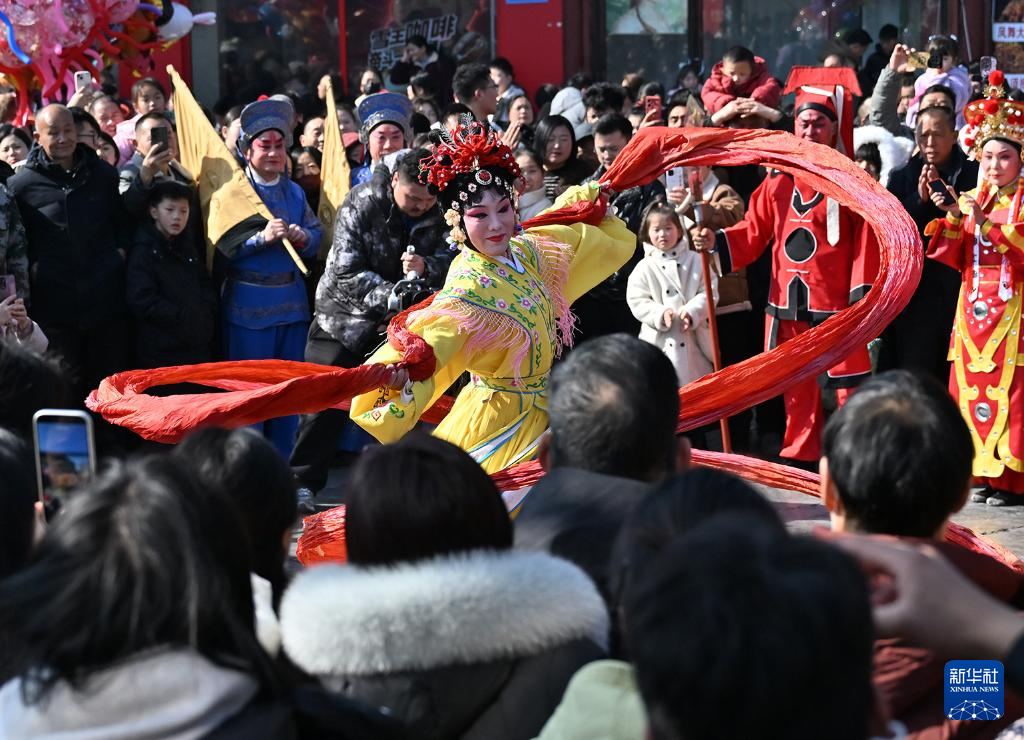 2月17日,人们在河南商丘古城观看民俗表演。新华社发(李恒 摄)