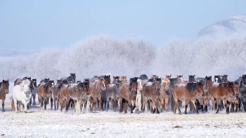 新春佳节,在内蒙古锡林郭勒草原牧民朝鲁的冬营地,邻里乡亲、牧马能手与骑马爱好者们欢聚一堂,齐心协力将马群聚拢,赶马、套马……一场充满游牧风情的新春活动燃动冰雪草原。