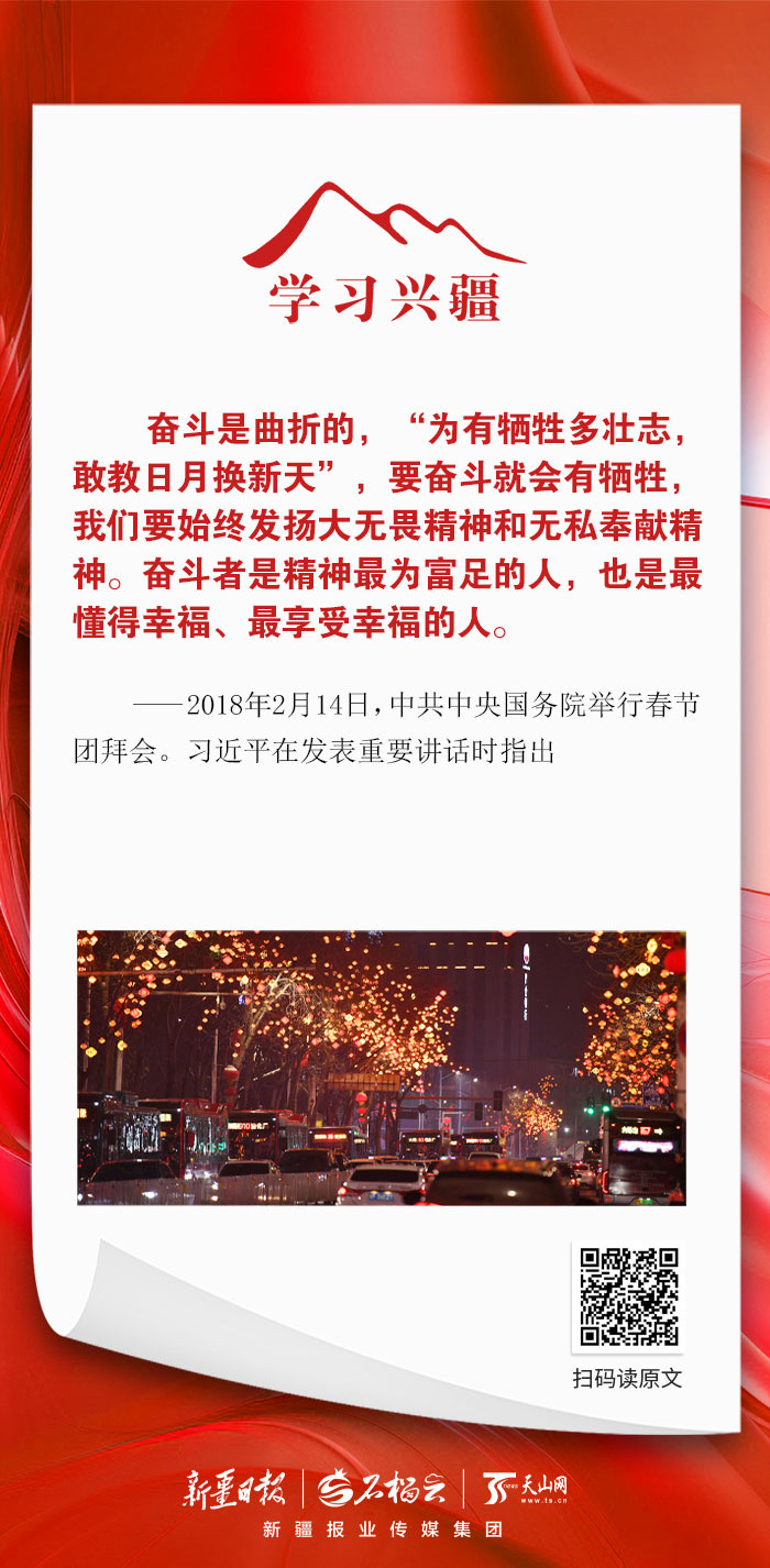 奋斗是曲折的,“为有牺牲多壮志,敢教日月换新天”,要奋斗就会有牺牲,我们要始终发扬大无畏精神和无私奉献精神。奋斗者是精神最为富足的人,也是最懂得幸福、最享受幸福的人。