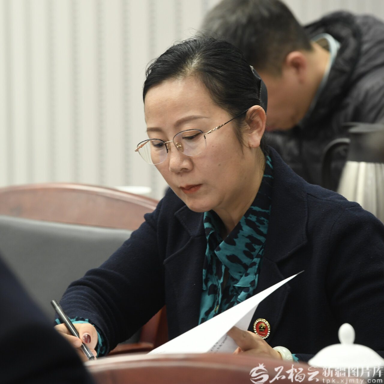 新疆地理标志产业协会会长张艺馨在会上认真记录。石榴云/新疆日报记者 韩亮摄