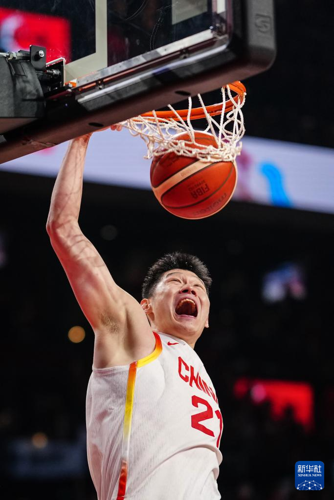 2月26日,中国队球员胡金秋在比赛中扣篮。新华社记者 贾浩成 摄