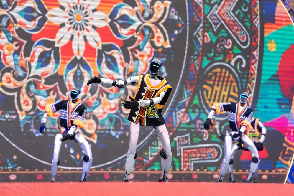 今年的巡游队伍中,还有一群特别的“演员”——身着绚丽民族特色服饰的机器人,伴着民族音乐灵活舞动,与街舞舞者同台“斗艳”,引得人们纷纷举起手机拍摄,喝彩声与掌声此起彼伏。