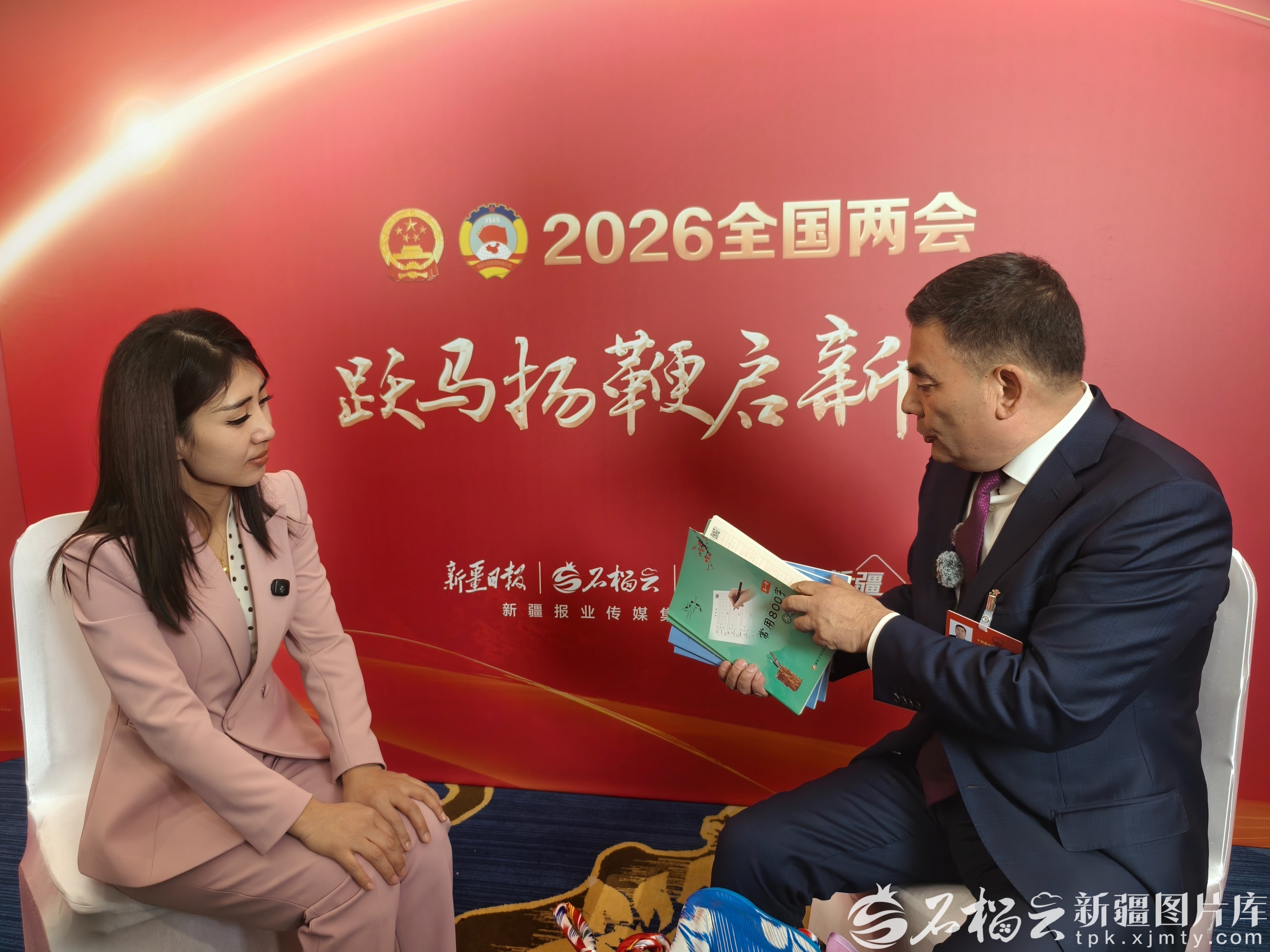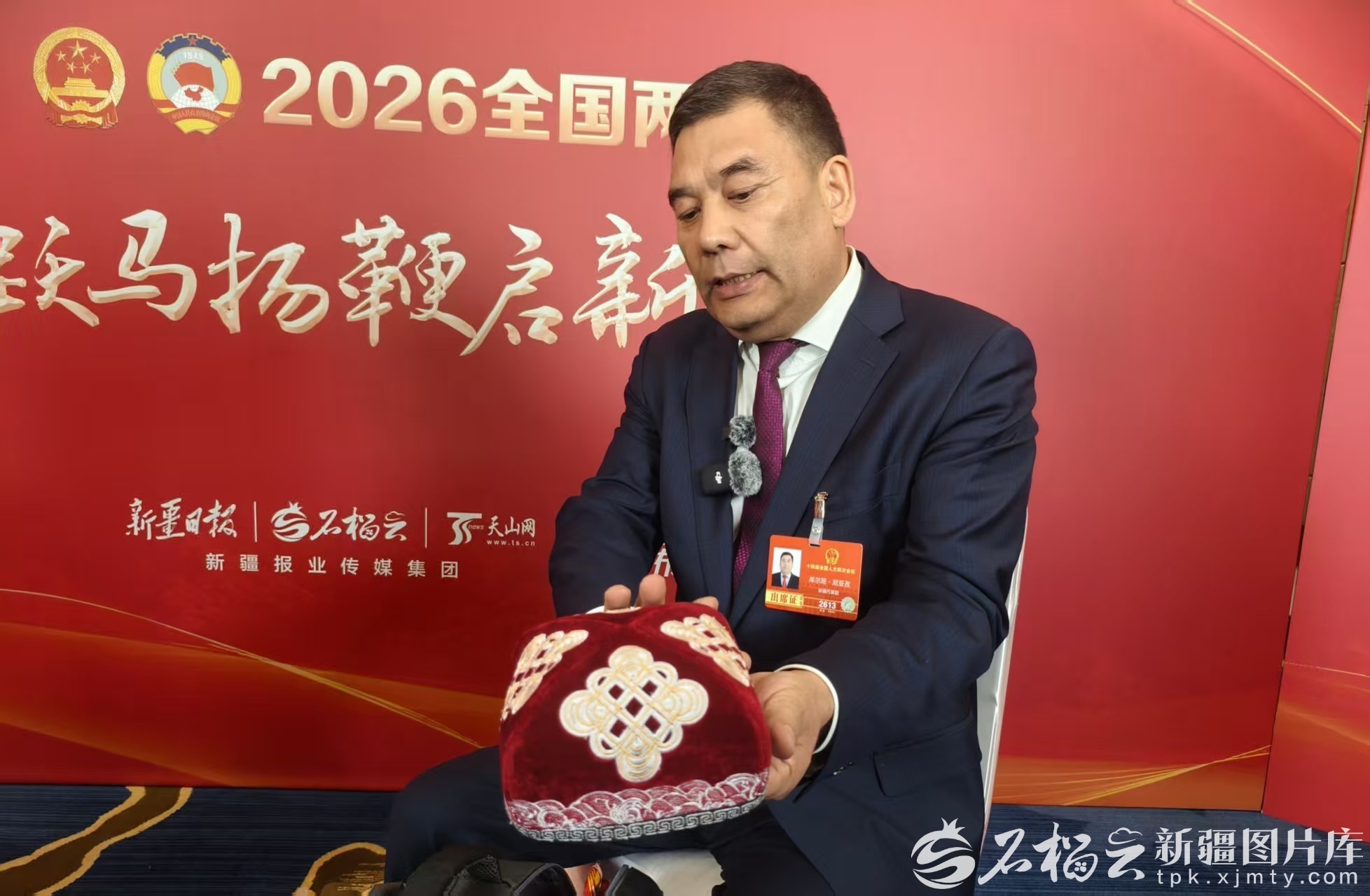 “快看,这是绣着中国结的小花帽,这是融入艾德莱斯绸纹样的中国结,还有这套既有传统韵味又有民族风情的中华传统服饰……”3月3日,在石榴云/新疆日报2026年全国两会北京访谈间里,全国人大代表库尔班·尼亚孜,一打开行李箱就忍不住向记者热情展示。这些亮眼又暖心的物件,正是新疆推广国家通用语言文字、促进各民族交往交流交融结出的鲜活果实。