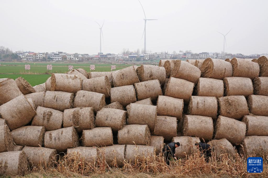 在位于长江江西段的棉船岛上,工人清理回收的秸秆准备运送至岛外循环利用(2026年1月29日摄)。新华社记者 万象 摄