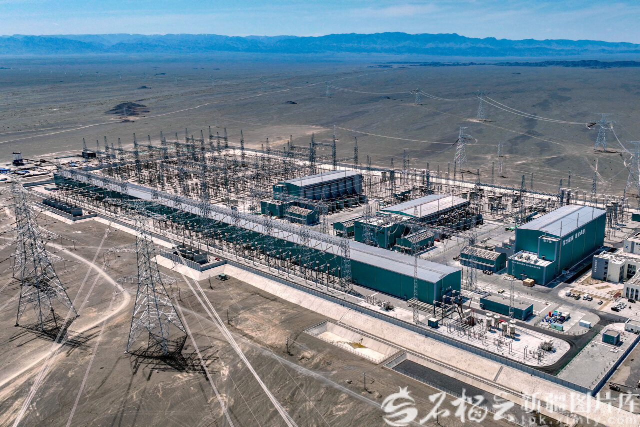 航拍哈密—重庆±800千伏特高压直流输电工程巴里坤换流站。石榴云/新疆日报记者 蔡增乐摄