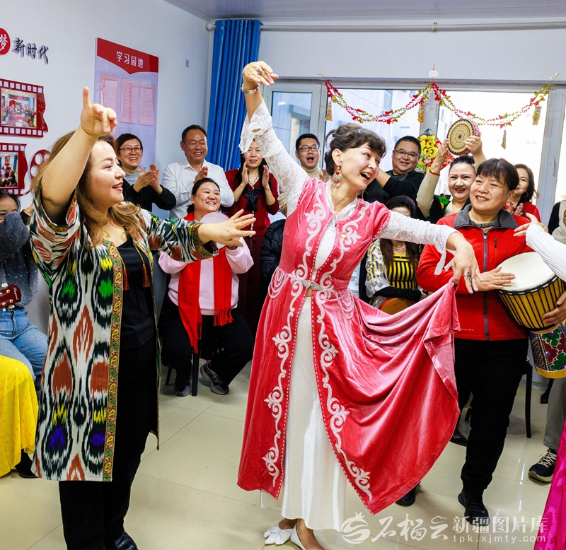 乌鲁木齐市天山区新华南路街道南郊客运站社区各族群众欢聚一堂。孙振嵩摄