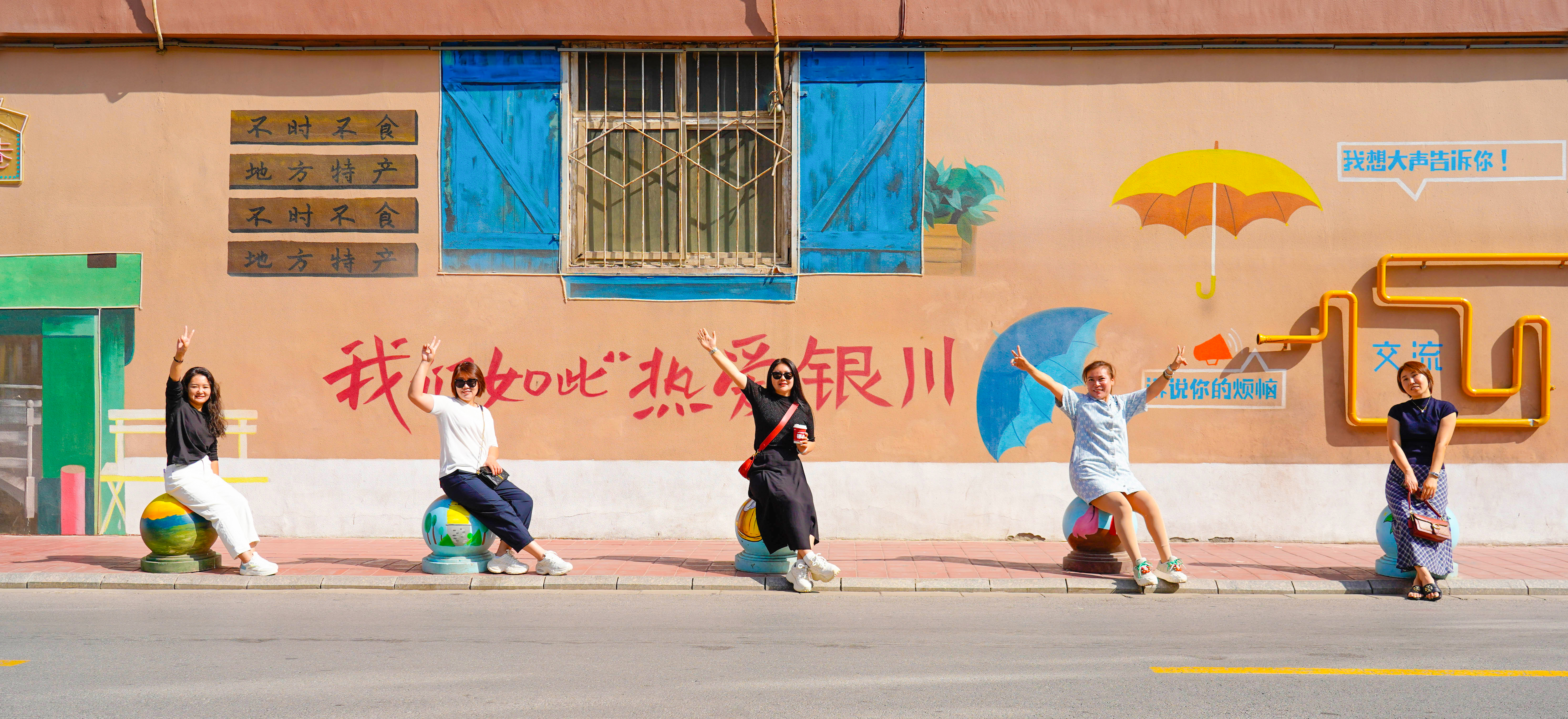 2025年7月15日,来自五湖四海的游客们聚集在自强巷写有“我们如此热爱银川”的墙绘前,脸上洋溢着灿烂的笑容。宁夏日报供图