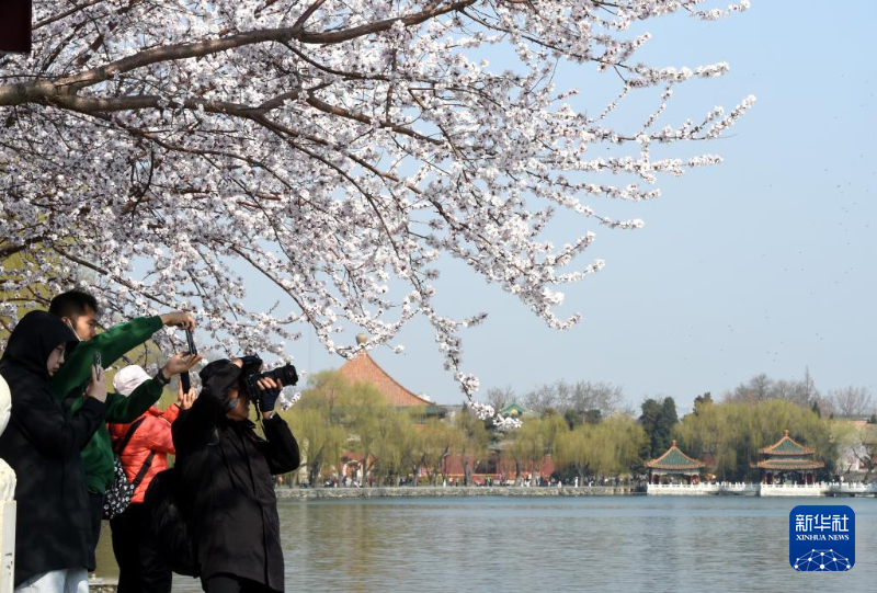 3月16日,游客在北京北海公园拍摄照片。