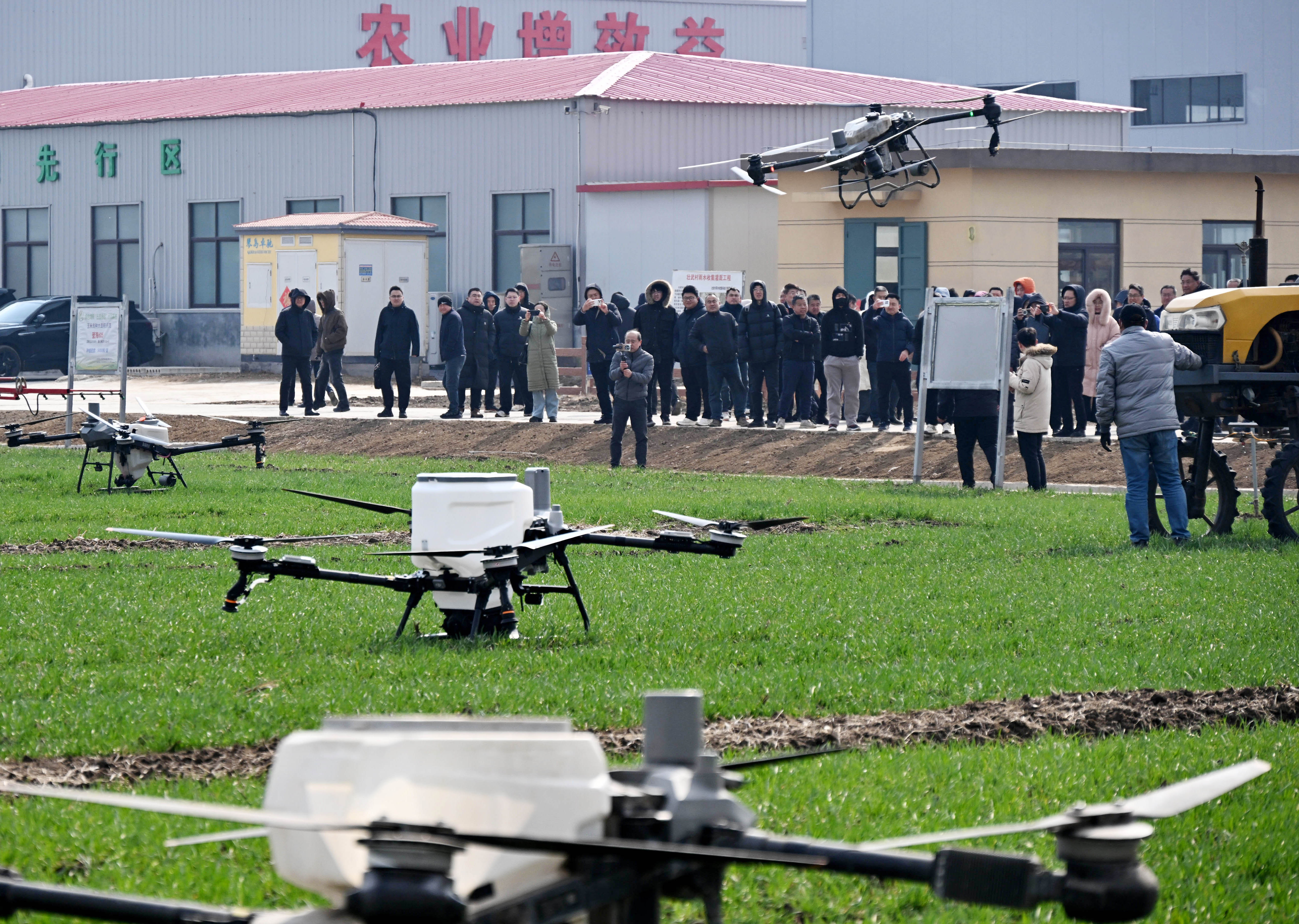 3月9日,在山东省肥城市安驾庄镇洼里无人智慧农场内,由山东农业大学团队自主研制的智能农机装备在田间穿梭,助力春耕生产。新华社记者 朱峥 摄