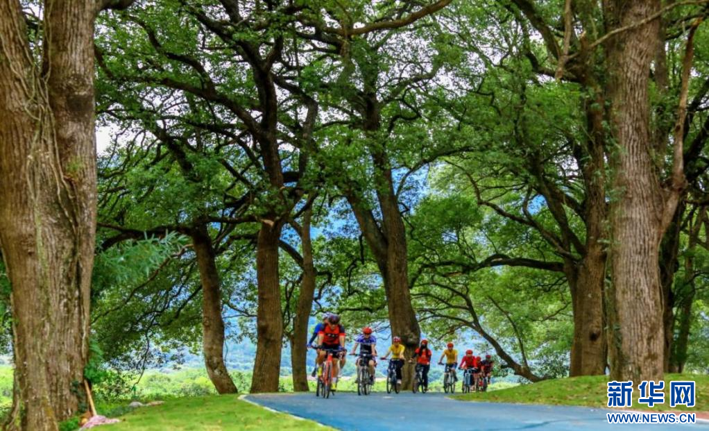 骑手们穿行在乌江畔的古樟林中。新华网发