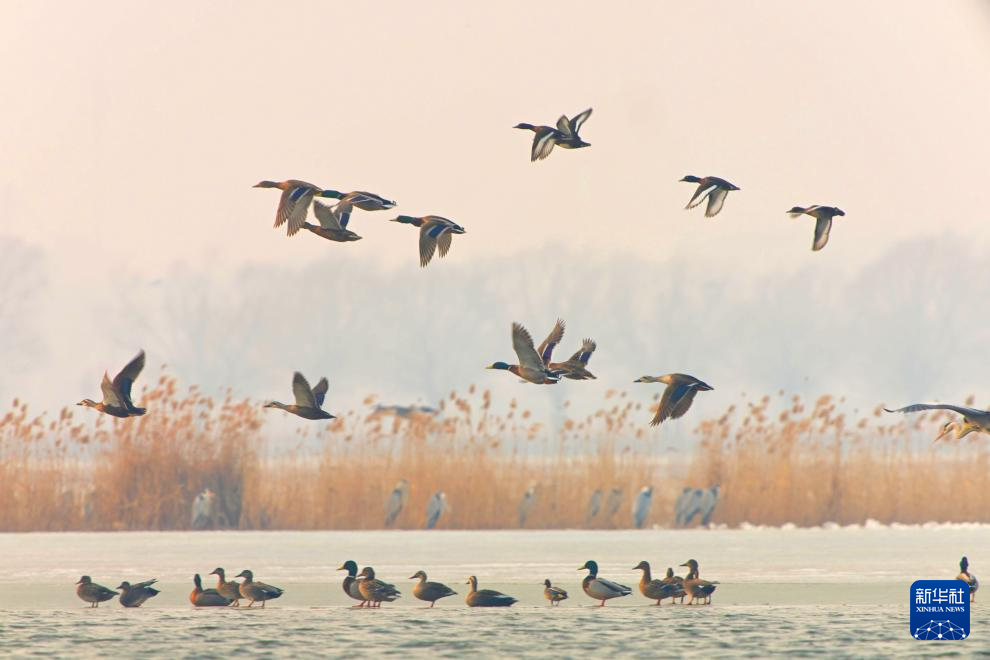 这是3月17日在黑龙江省齐齐哈尔市拍摄的野鸭群。新华社发(王勇刚摄)