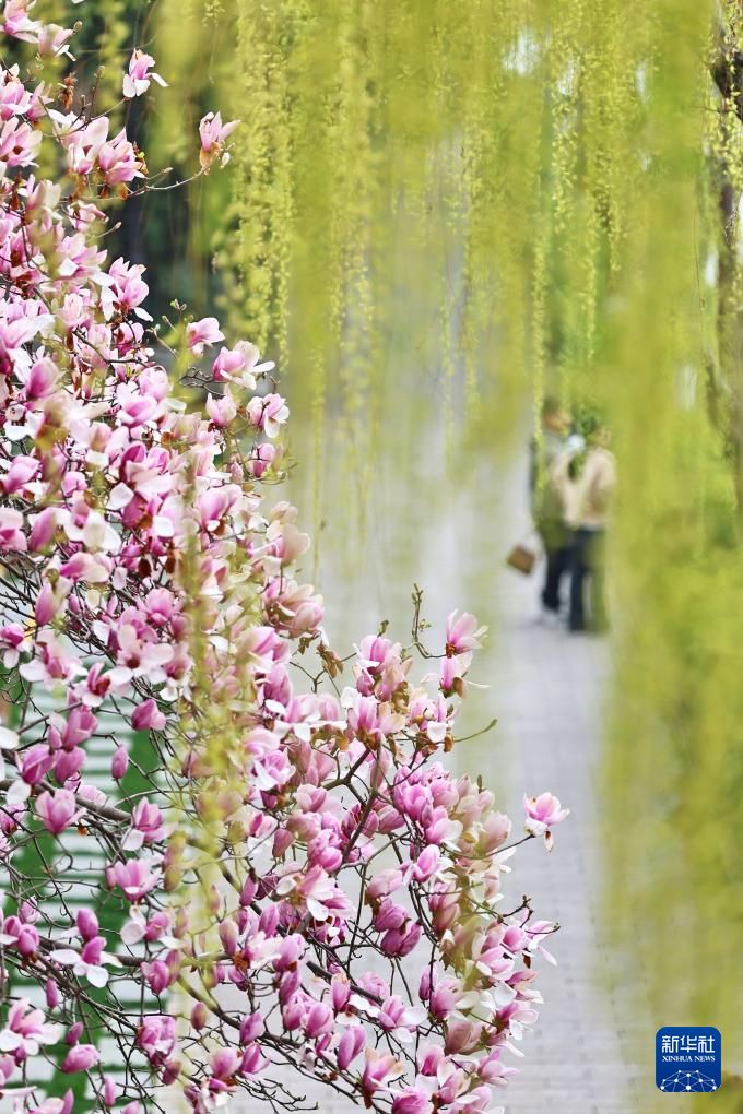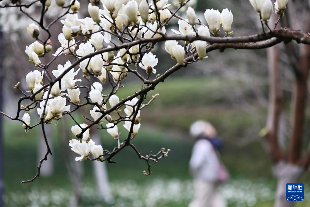 3月18日,人们在江苏省昆山市亭林园赏花拍照。新华社发(王须中摄)