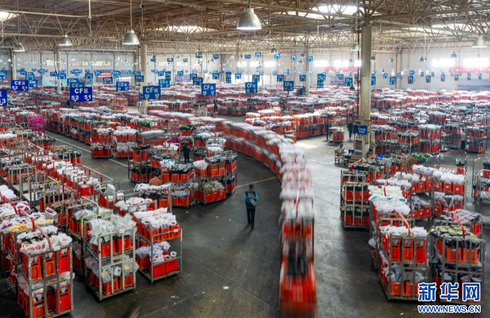 1月22日,台车在昆明国际花卉拍卖交易中心内转运鲜花。新华社记者 陈欣波 摄