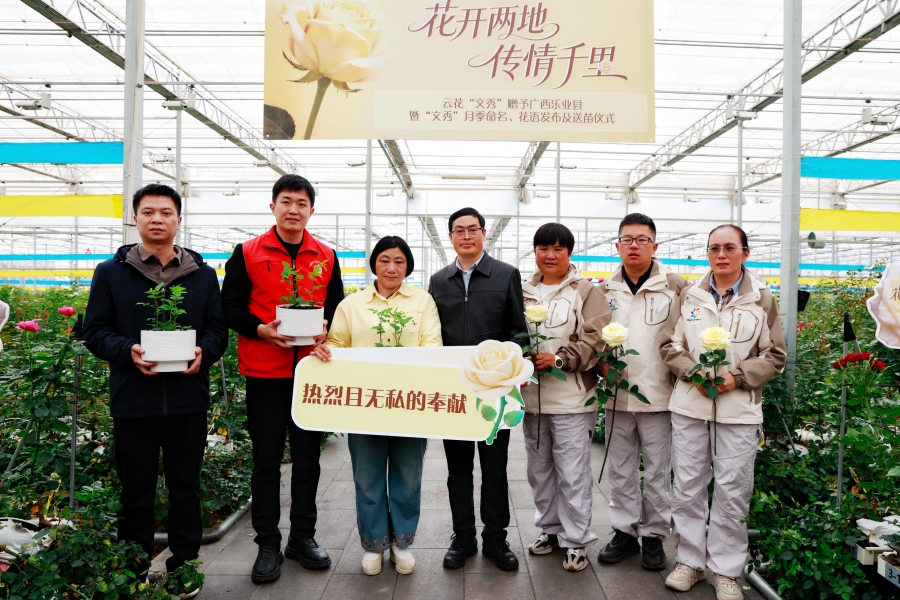 “文秀”月季送苗仪式现场(3月18日摄)。新华网 赵普凡 摄