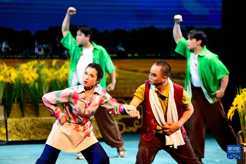 3月20日,在博兴县市民文化中心,来自四川省南充市川剧团的戏曲演员在表演川北灯戏《风吹稻穗香》。新华社记者 郭绪雷 摄