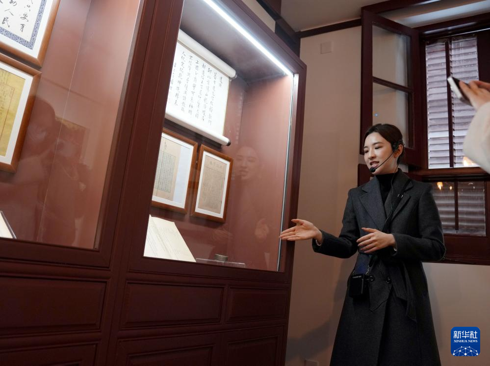 3月23日,讲解员在介绍旧址内的文物展品。新华社记者 刘颖 摄