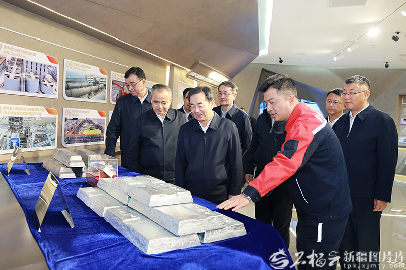 3月25日,自治区党委书记陈小江、自治区主席艾尔肯·吐尼亚孜在位于洛浦县的和田昆冈经济技术开发区,实地了解新疆昆仑锌业有限责任公司生产运营情况。石榴云/新疆日报记者 崔志坚摄